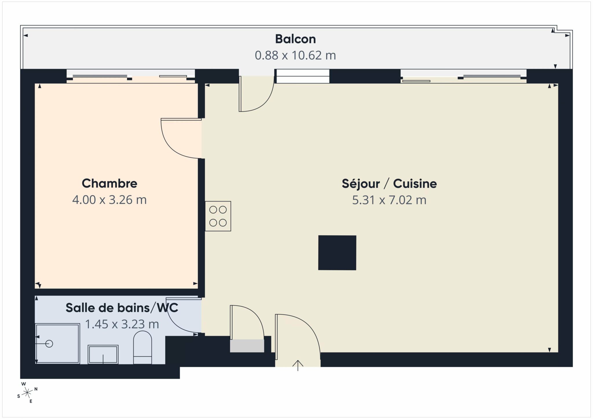 - Séjour/cuisine : 37,3 m²