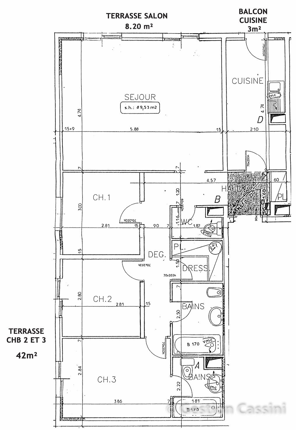 - Salle de bains / toilettes : 3,78 m²