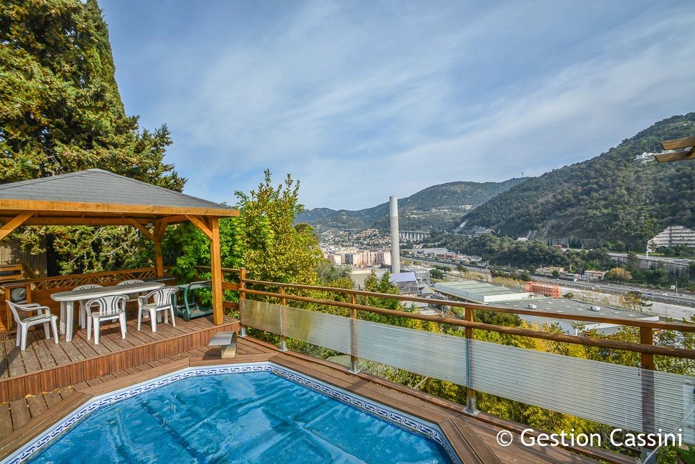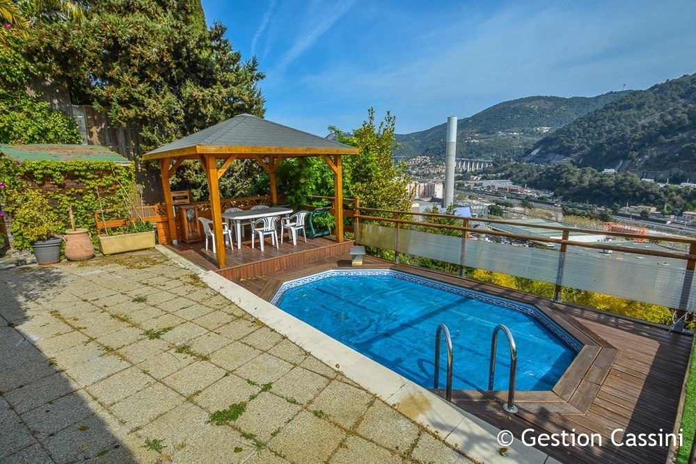 VIEUX CHEMIN DE L'ABADIE - ST ANDRE DE LA ROCHE : Belle maison individuelle 3 pièces d'une surface de 71.17 m² (57.34 m² + véranda de 13.83m²) implantée sur terrain en restanques de 953 m², se composant d'un séjour avec cheminée équipée d'un insert, cuisine américaine, véranda attenante, 2 belles chambres, dressing, salle de bains avec toilettes et toilettes indépendant, atelier et abris de jardin. Doubles vitrages et climatisation. Belle planche aménagée autour de la maison avec terrasses et piscine, plusieurs planches en restanques exploitables. Nombreux parkings extérieurs. Proximité immédiate de l'autoroute A8 et la pénétrante. Honoraires à la charge de l'acquéreur : 12.000 € soit 5.04 %.